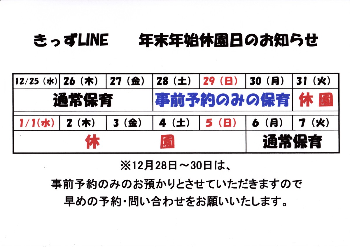 年末のお預かりは予約制ですので、早めの問い合わせ、予約をお願いします。